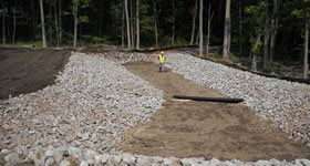 Oxford, Connecticut: Midstate built one regulation football field and one regulation soccer field. The job consisted of screening 12,000 yards of topsoil, importing more than 18,000 yards of borrow, installing a drainage system below the fields, and installing sod over the entire two fields. The job had many environmental challenges as well as a very tight schedule. The job came in on time and on budget.